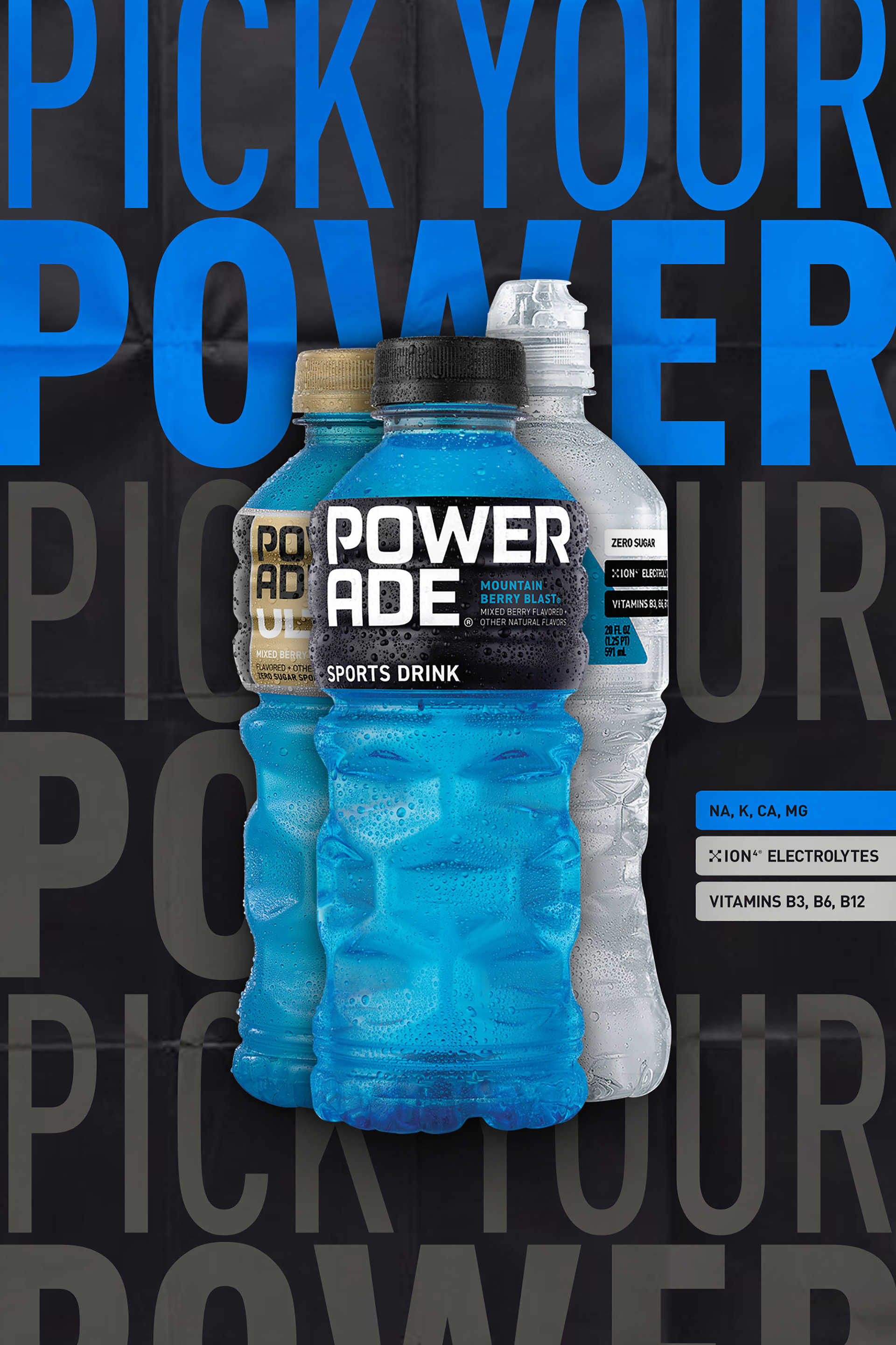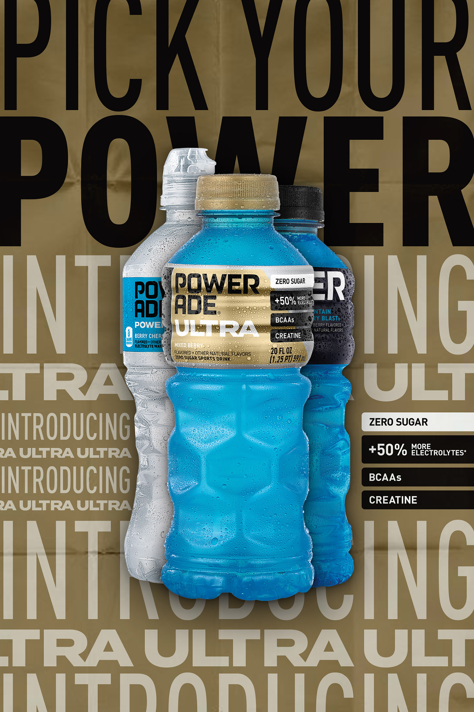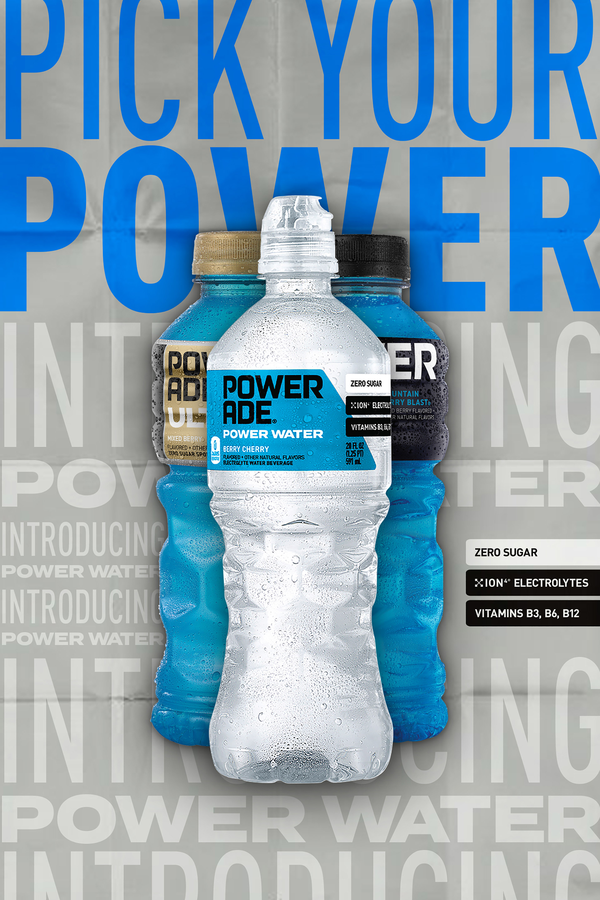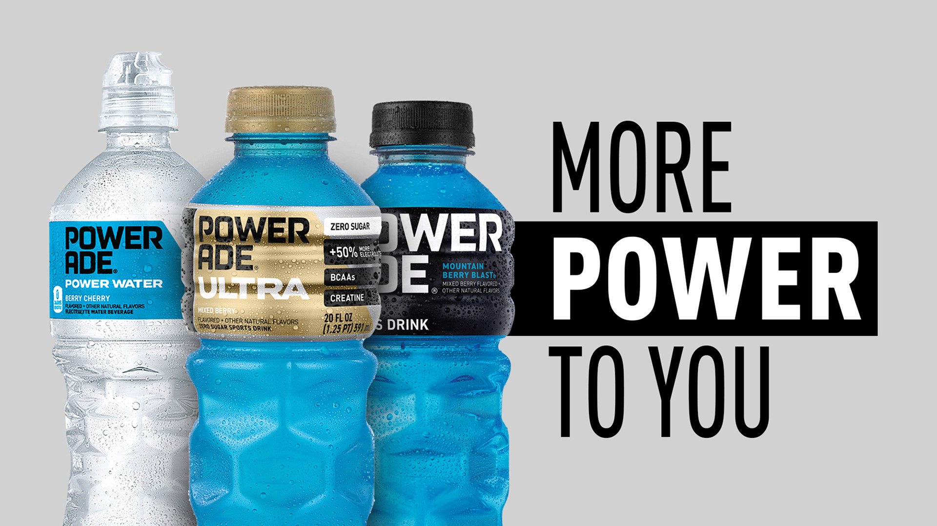 A new design treatment for POWERADE with the launch of Ultra and Power Water.